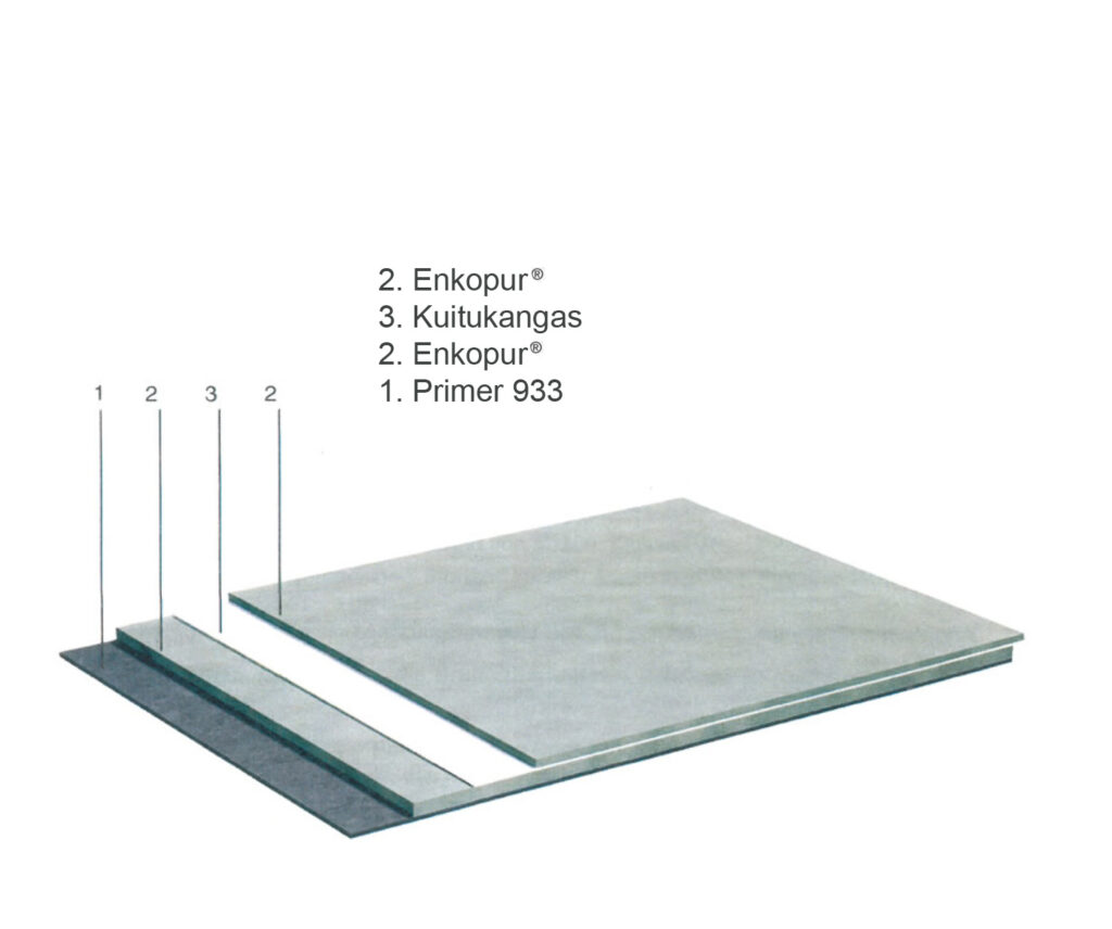Enkopur on nestemäinen, 1-komponenttinen polyuretaanimassa, joka vulkanisoituu pysyvästi joustavaksi kalvoksi. Tuote soveltuu erinomaisesti Suomen vaativiin olosuhteisiin.