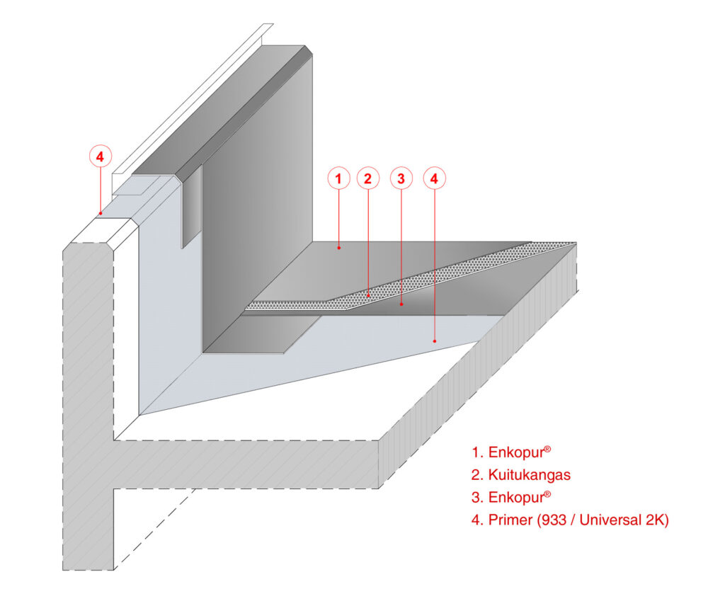 Enkopur-menetelmää käytetään myös uusien kattojen haastavien liitoskohtien tiivistämiseen jo rakennusvaiheessa.